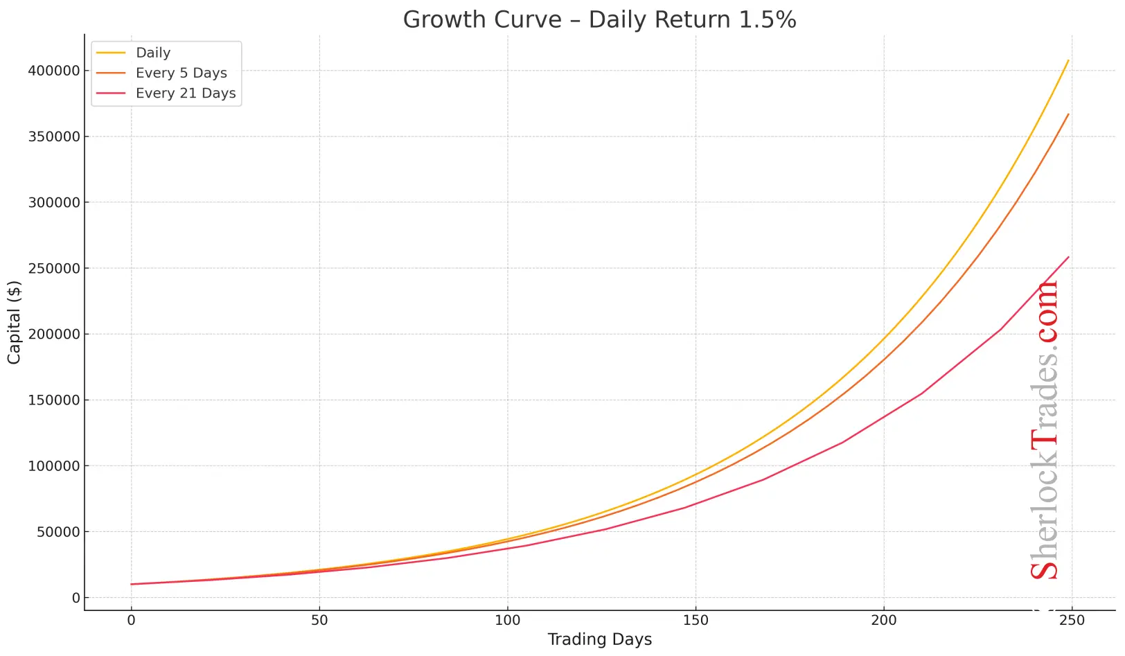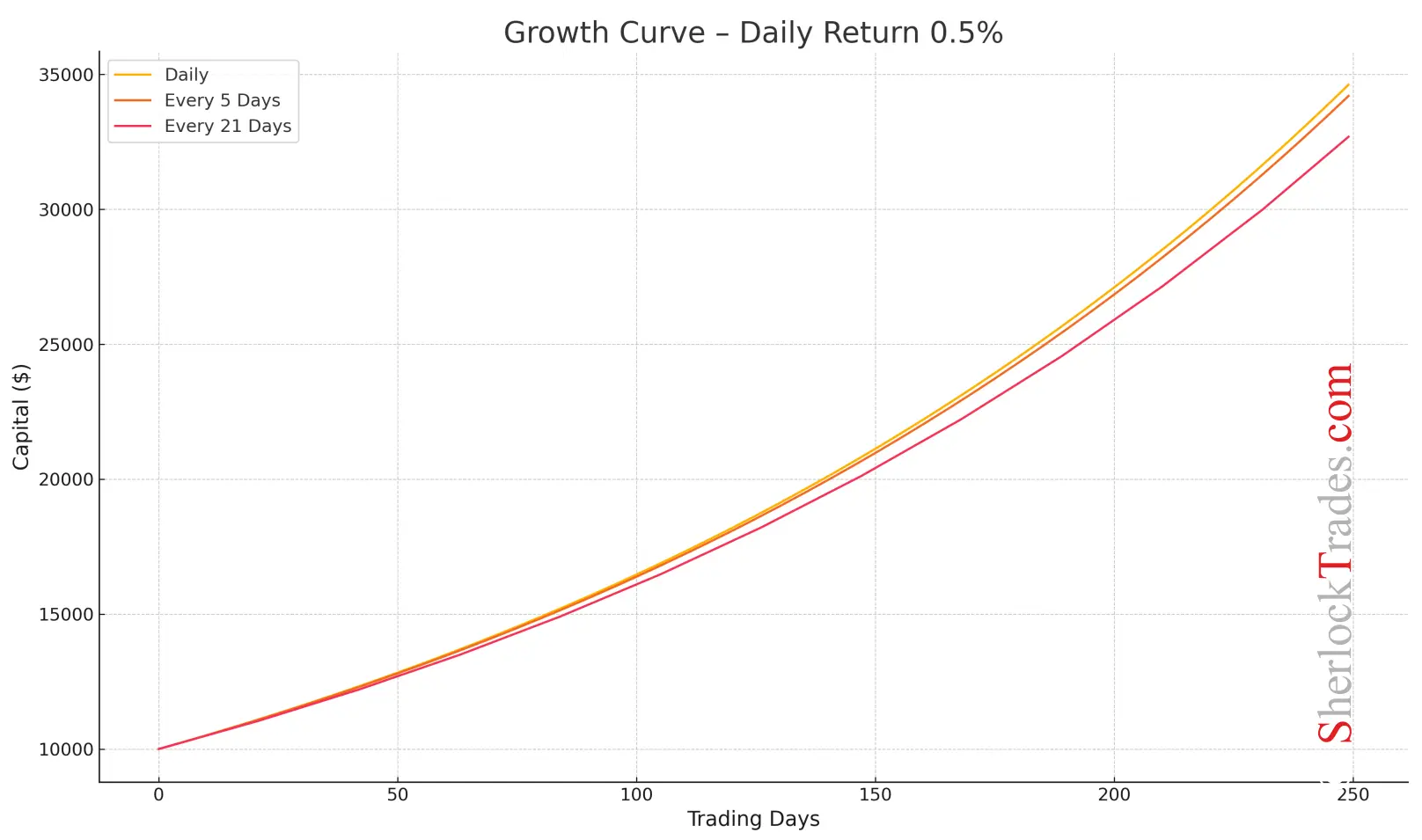 All capital growth curves assume the same average daily percentage gain.