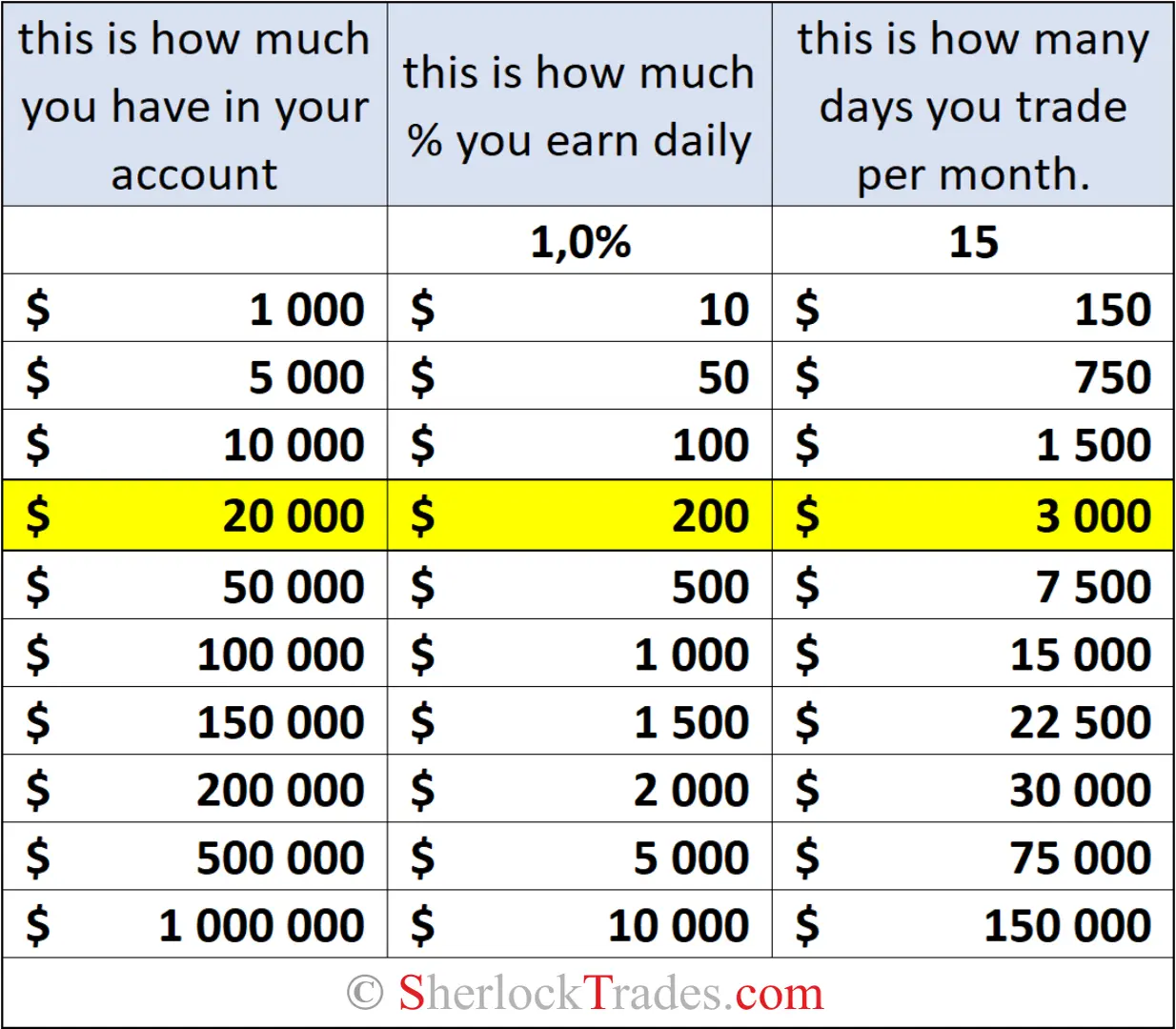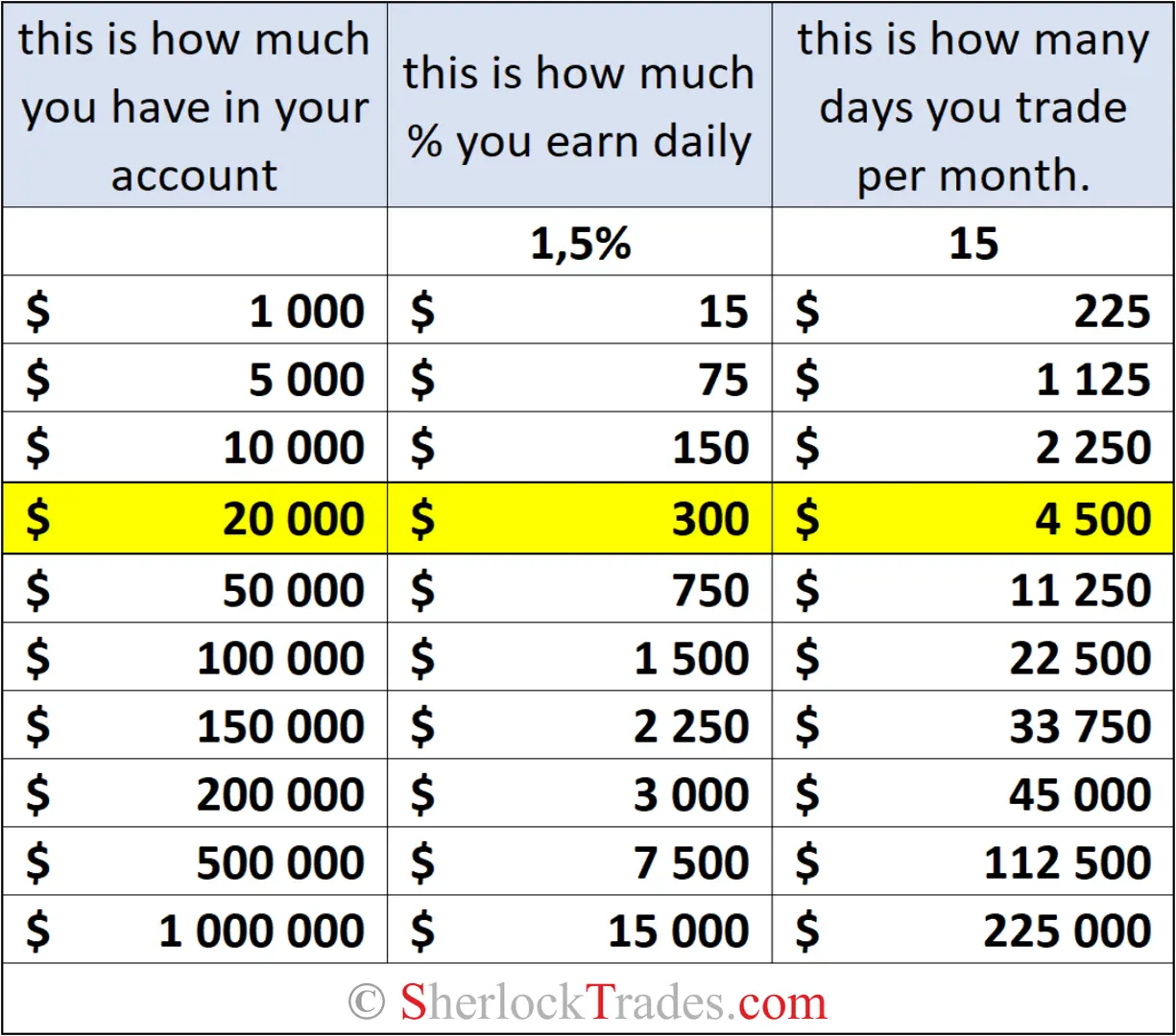 Do you remember Larry Williams’ result? Have you ever wondered how much you would need to earn on average day after day to achieve such a result?