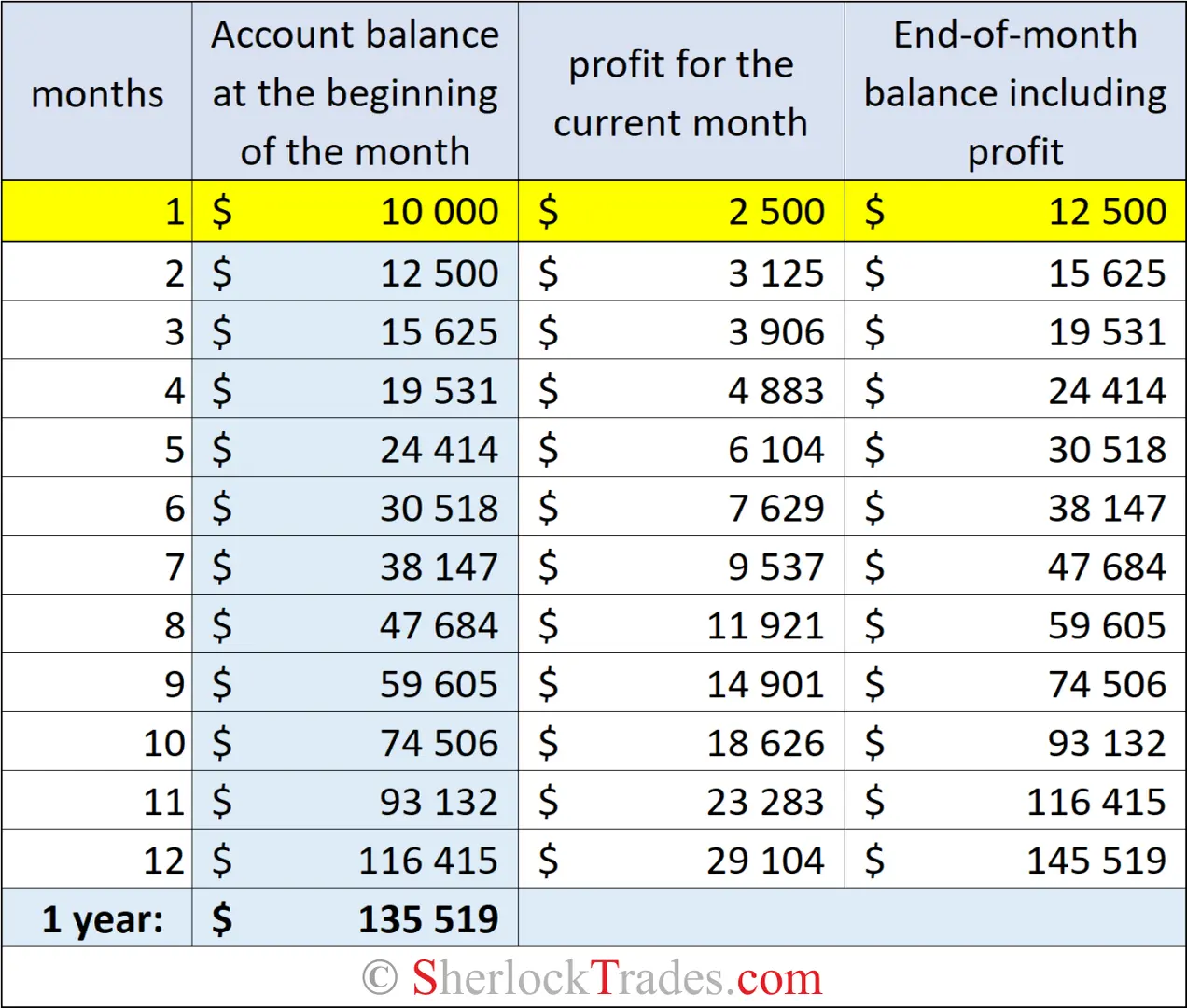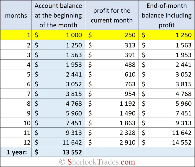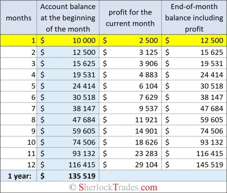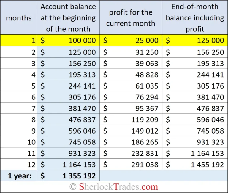 Remember, however, that 1% in the table may look modest, but in practice achieving such average results requires the highest level of professionalism. It’s impossible to maintain these results long‑term without deep work on yourself, strict adherence to risk control rules, money management, etc.