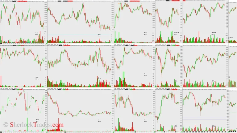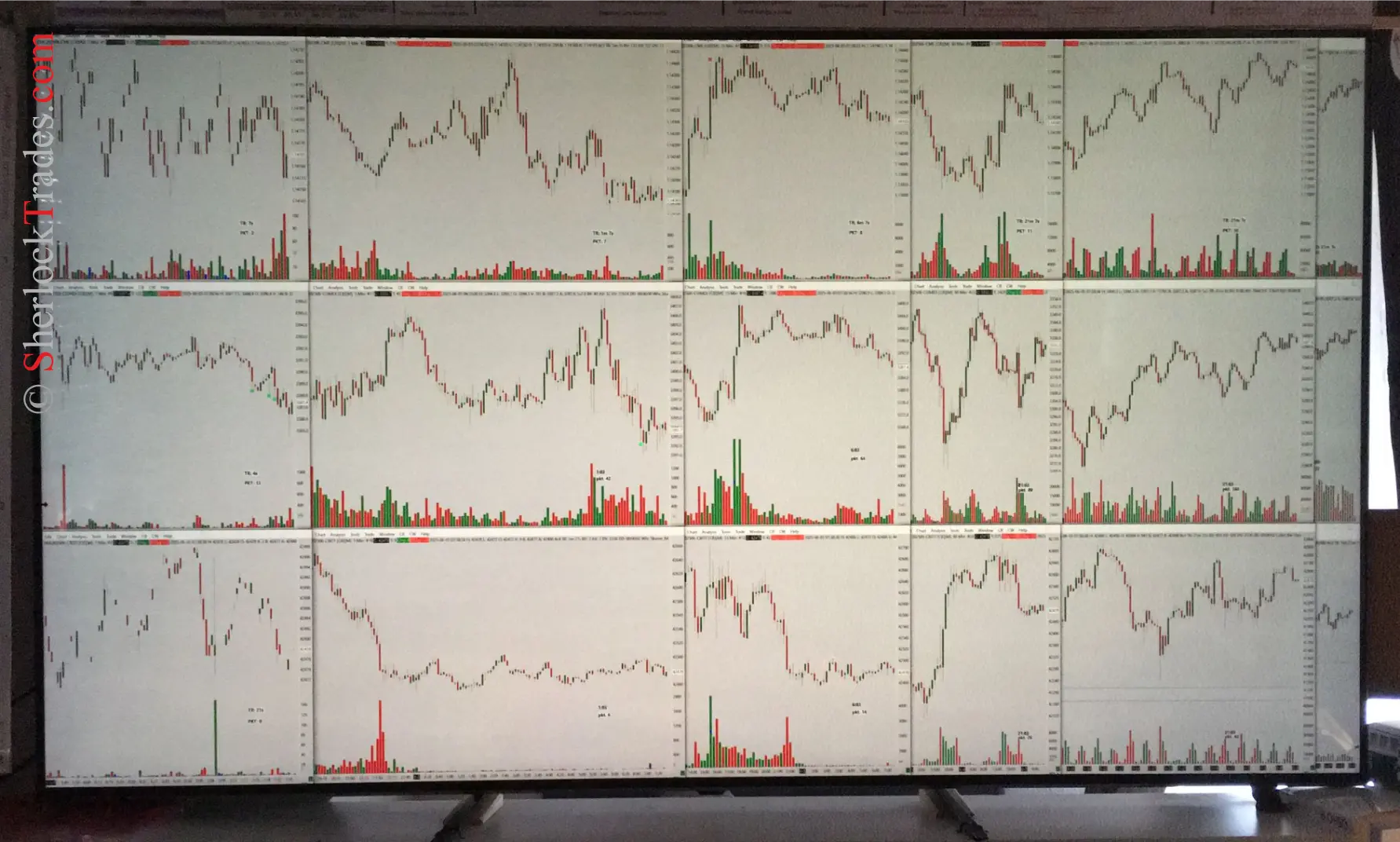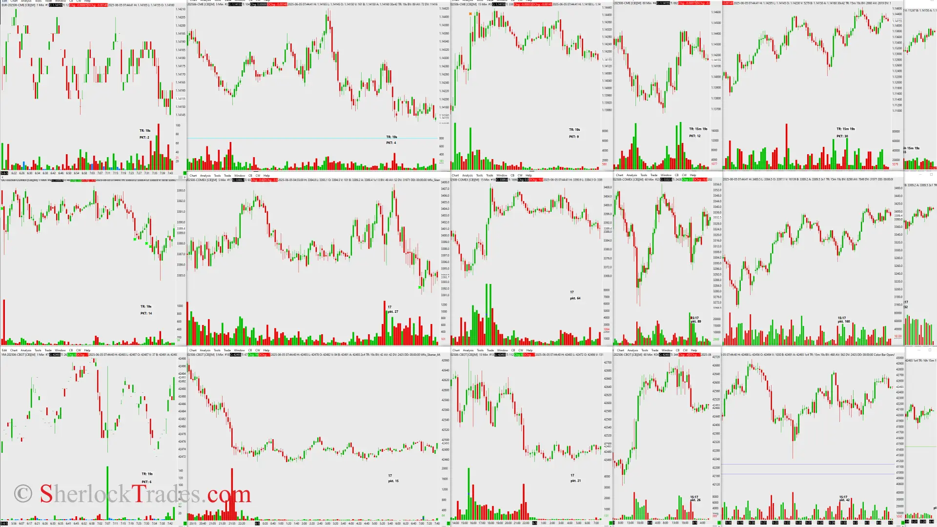 My monitor with charts – Sierra Chart platform. In this case, it’s 3 instruments, although I often work with 2, in which case I use a different window layout.
